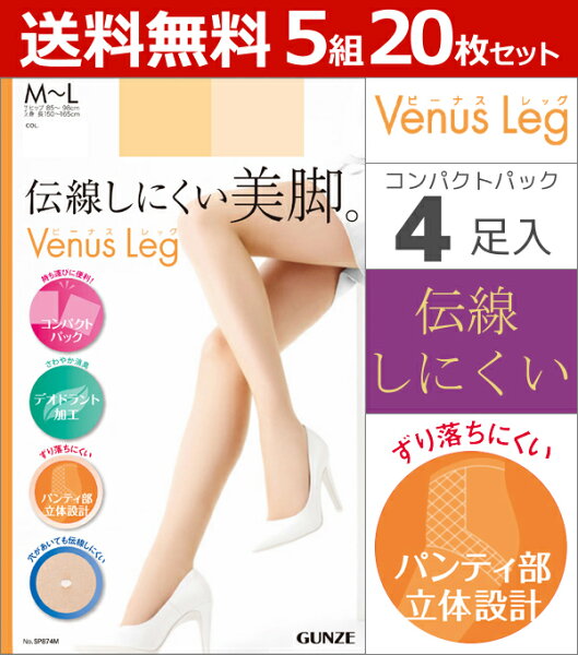 送料無料5組セット 計20枚 Venus Leg ビーナスレッグ 伝線しにくい 美脚パンスト 4足入 グンゼ GUNZE パンティストッキング|ストッキング レディース パンティーストッキング UV まとめ買い インナー 女性 つま先補強 ゾッキ 結婚式 黒 ベージュ